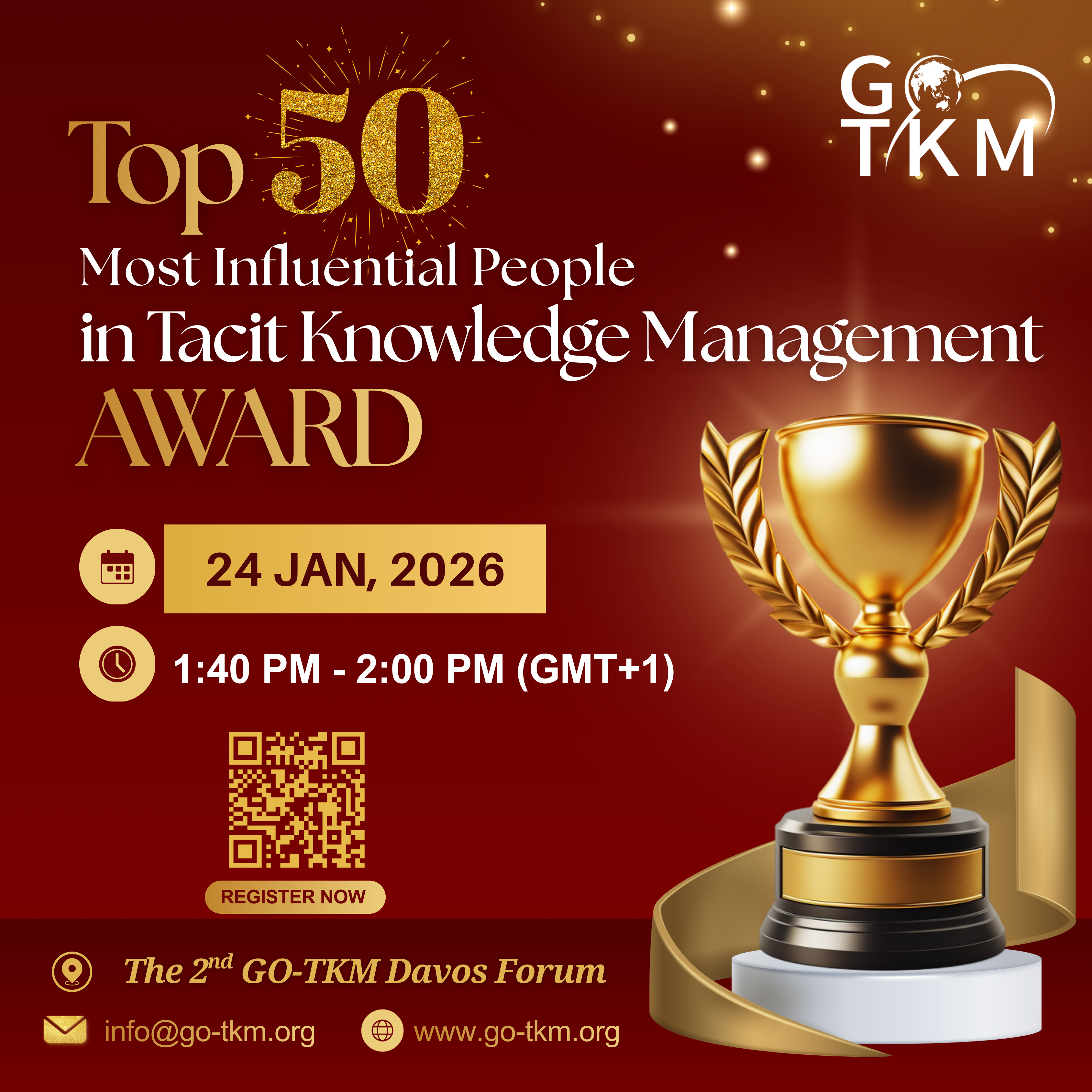 Brussels, Belgium — The Global Think-Tank of Organizational Tacit Knowledge Management (GO-TKM), a Belgium-based non-profit organization advancing the field of tacit knowledge management (TKM), is proud to announce the “Top 50 Most Influential People in Tacit Knowledge Management 2025.”